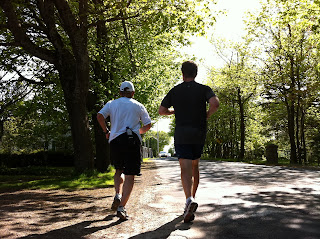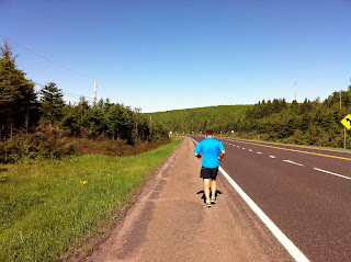 After listening to I Am Number 4 I downloaded another audiobook entitled The Host. Mike ran with me for part of the morning. I felt good and the weather again was great. Our pace was the fastest so far this trip. My legs are starting to get used to all this running…. finally. By 30km we had entered Riviere-du-Loup and stopped just under an overpass.