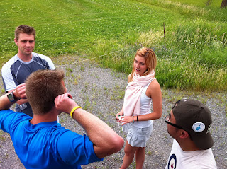 Once we got to the hotel Lauren brought out a huge bag of stuff that Dave had given her before she left Vancouver. OGIO Canada had sent a ton of shirts, POW had given us a few pairs of gloves, and MyPakage sent along a bunch of underwear. It was like Christmas!