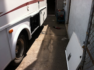 Our RV needed to get serviced and to have one of the side hatch doors repaired after an un-named driver drove off with it open and it smacked into a tree. There have also been some odd problems with our windshield wipers, some other electrical malfunctions, and it has been 10,000km so far so we felt it could do with a service.
