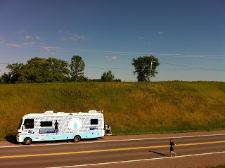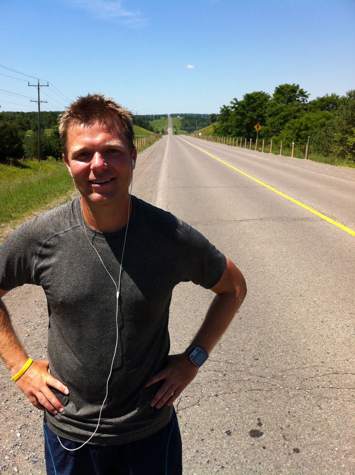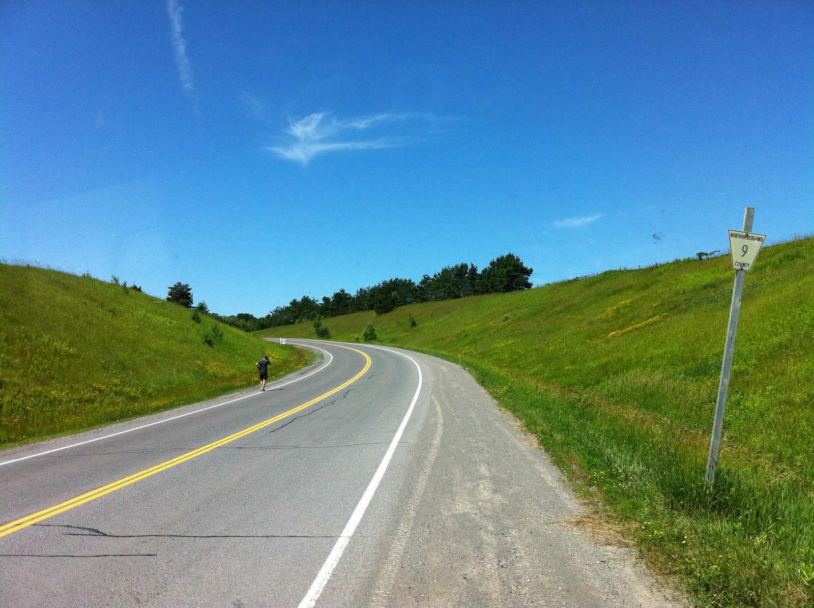 So I’ve managed to run over 2000km so far and have never had a problem with traffic. This all changed just outside of Oshawa. In the space of 20 minutes I had 3 cars honk at me and the drivers furiously motion for me to get out of their way (I wasn’t in their way), one of whom even dropped his two right wheels onto the gravel shoulder to force me down into the ditch. I had a fourth person actually stop and start yelling at me. At first I thought he wanted to talk with me but when I took out my earphones to talk to him I discovered he was unhappy with me and so I put my earphones back in and kept going. Needless to say I got off that road as soon as I could.