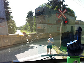 Once running, it was looking as if it was going to be a rather uneventful day. Riley started running at 9:45am, but it wasn't blistering hot yet, and there were no bugs out. As the day went along, Riley was running well, had a great paved shoulder with lots of space and a highway with little traffic. For lunch, I made 2 sandwiches each, which were very good, and Riley ate his while walking. After he ate his sandwich, he continued to walk while making a number of phone calls.