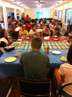 As we walked into the dining hall, we were escorted to our seats at the end of a table facing the hall, full of 80 kids. On the menu: Hot dogs! A true camp food! Riley and I enjoyed chatting to the counselors and the kids about camp and the different activities etc. After the meal, we were kindly asked to do a short talk about Riley's run.
