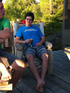 An observation was made by Derek and Anne that a large school of fish was to be found by our dock. No sooner had their observation been stated then Tom and Riley took up the rod and reel. In fact, as I write this they just caught a plump bass, which provoked an argument about whether or not to eat it; ultimately it was put back (to the bass’ – and Jean’s - delight). All have now gathered on the porch to enjoy one another’s company and their cocktails (with the exception of the fishermen) and will soon chat themselves through dinner and into their beds.