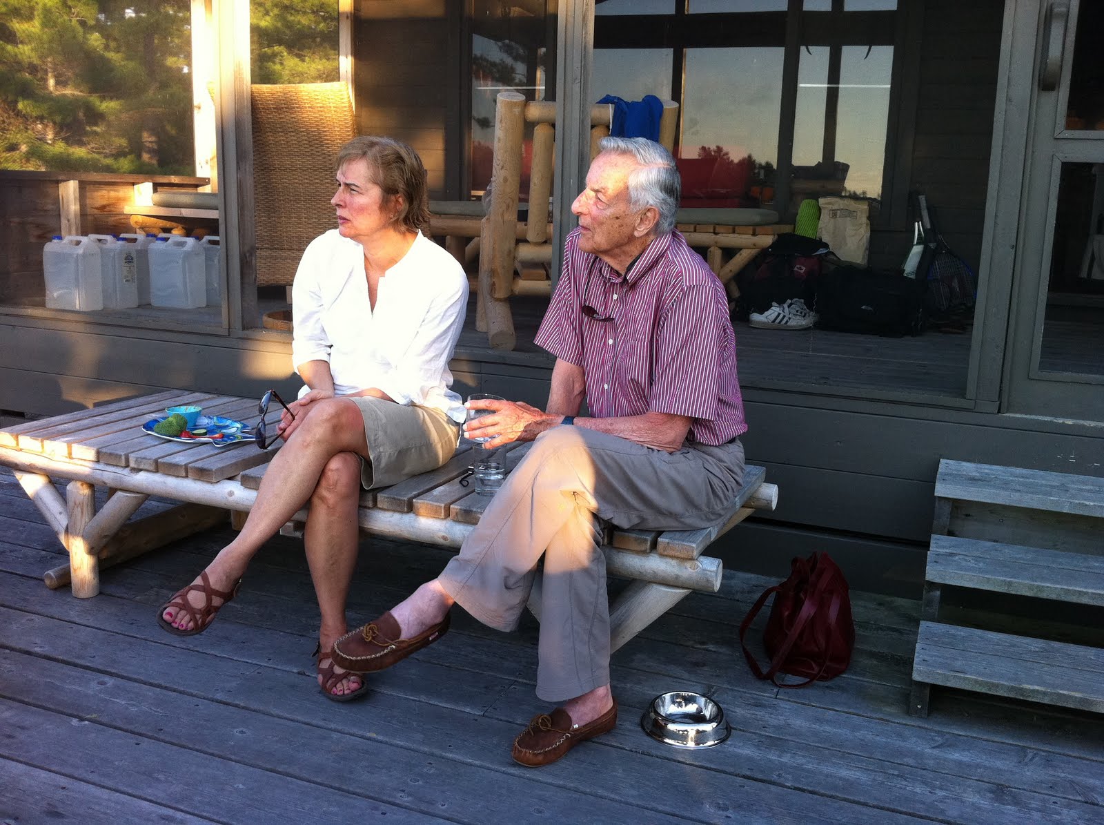 An observation was made by Derek and Anne that a large school of fish was to be found by our dock. No sooner had their observation been stated then Tom and Riley took up the rod and reel. In fact, as I write this they just caught a plump bass, which provoked an argument about whether or not to eat it; ultimately it was put back (to the bass’ – and Jean’s - delight). All have now gathered on the porch to enjoy one another’s company and their cocktails (with the exception of the fishermen) and will soon chat themselves through dinner and into their beds.