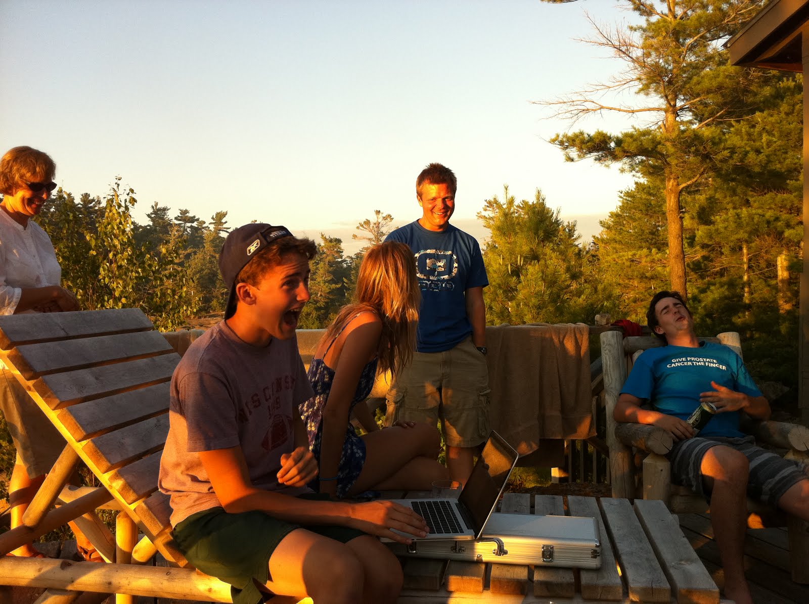The day was still young and more excursions took place- a relaxing kayak (during which a swimming spot was discovered that was described as “straight out of a movie”), many walks about the island, a crushing defeat to Tom in chess, and a light lunch somewhere in between. As we relaxed in the warm, clear Georgian Bay water (Riley now rested and with us) another idea was concocted and swiftly executed. We dropped anchor on a nearby sand bar and, with naught but a Frisbee and our enthusiasm, enjoyed ourselves thoroughly.