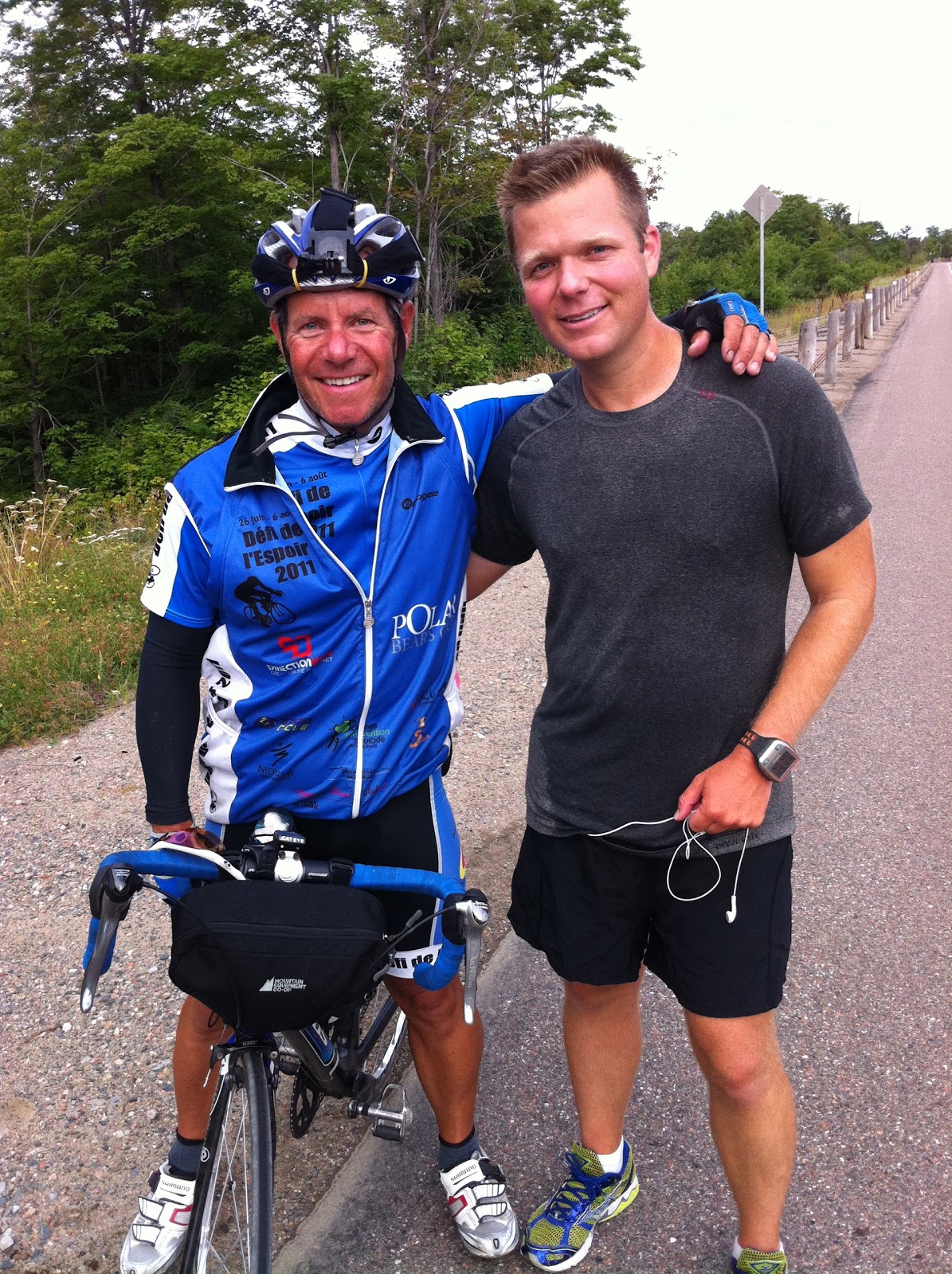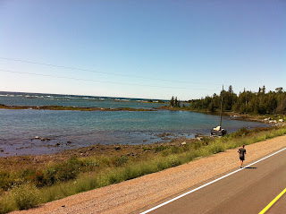 What’s really exciting is that I managed to run 60km back to back for the first time since the start of this trip! Awesome! What’s not awesome is that Mike has no service on his phone, which means that our Internet hub won’t work because they use the same carrier. I have reception but it’s sporadic. It’s the only time so far this trip that I have had reception while Mike has not. I may start to tone down my hatred of Rogers if it keeps up. So we’ve essentially gone dark and can’t update our Facebook, Twitter or blog. Hopefully it doesn’t last too long although there isn’t much between here and Thunder Bay.