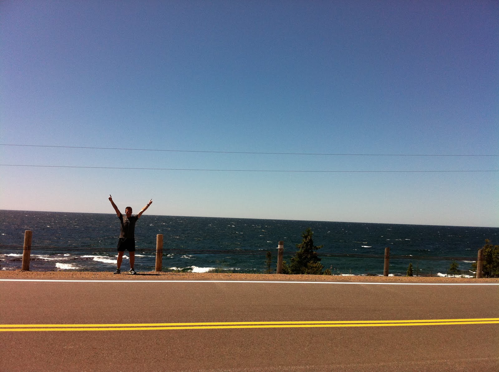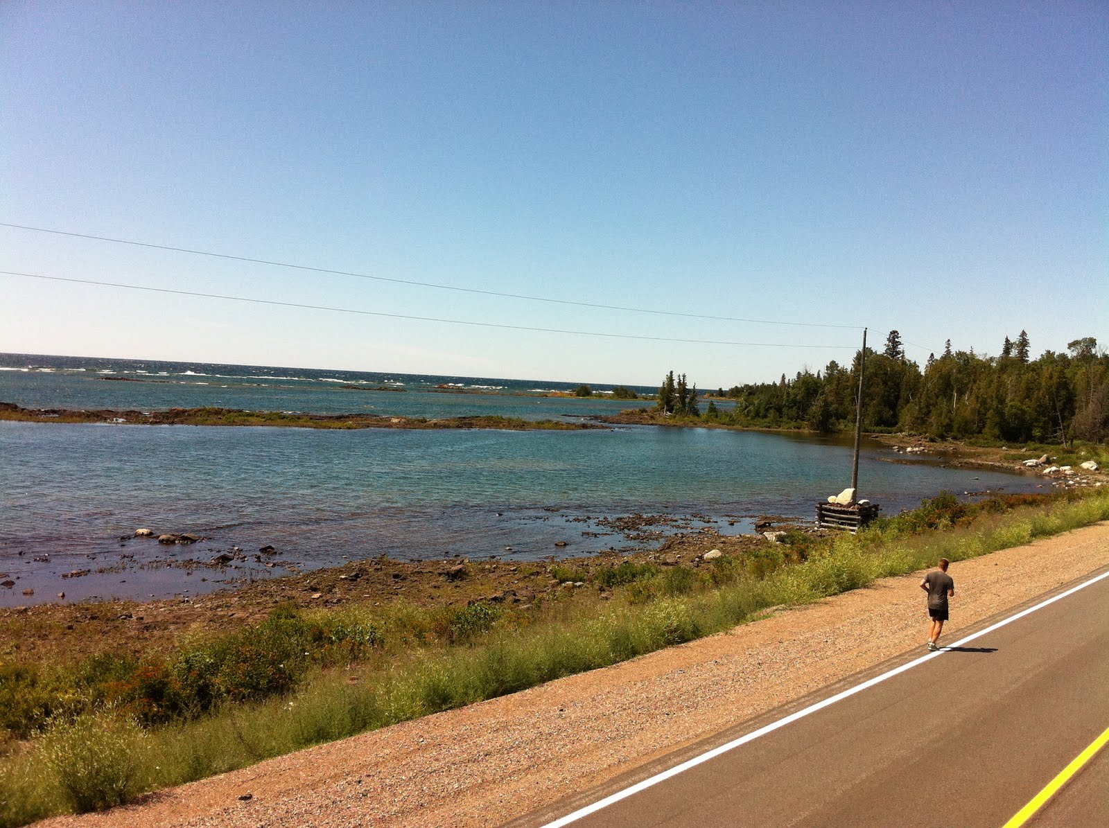 The run today was along the cliffs of Lake Superior. It was absolutely beautiful, and looking out over the lake reminded me of the ocean, it’s so big. It actually reminded me a lot of the Sea to Sky highway from Vancouver to Whistler. Part of what made the route beautiful also made it very hilly and I encountered some of the biggest hills I’ve had to date. But the temperature and humidity were perfect and it was a really enjoyable run. I’m still listening to Those In Peril by Wilbur Smith and it’s a great book, I highly recommend it.