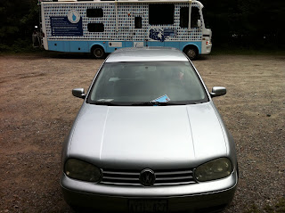 Around km 37, as I was slowly trudging up one of the endless climbs a silver VW Golf pulled over in front of me and out jumped Heather Levie, an old friend of mine. She and her boyfriend Travis were camping in the park and just happened to drive past me on their way to Orphan Lake. It was great to see her again! We tried to get Mike’s attention as he was only about 500m back in the RV, but he was busy making sandwiches and missed the whole thing.
