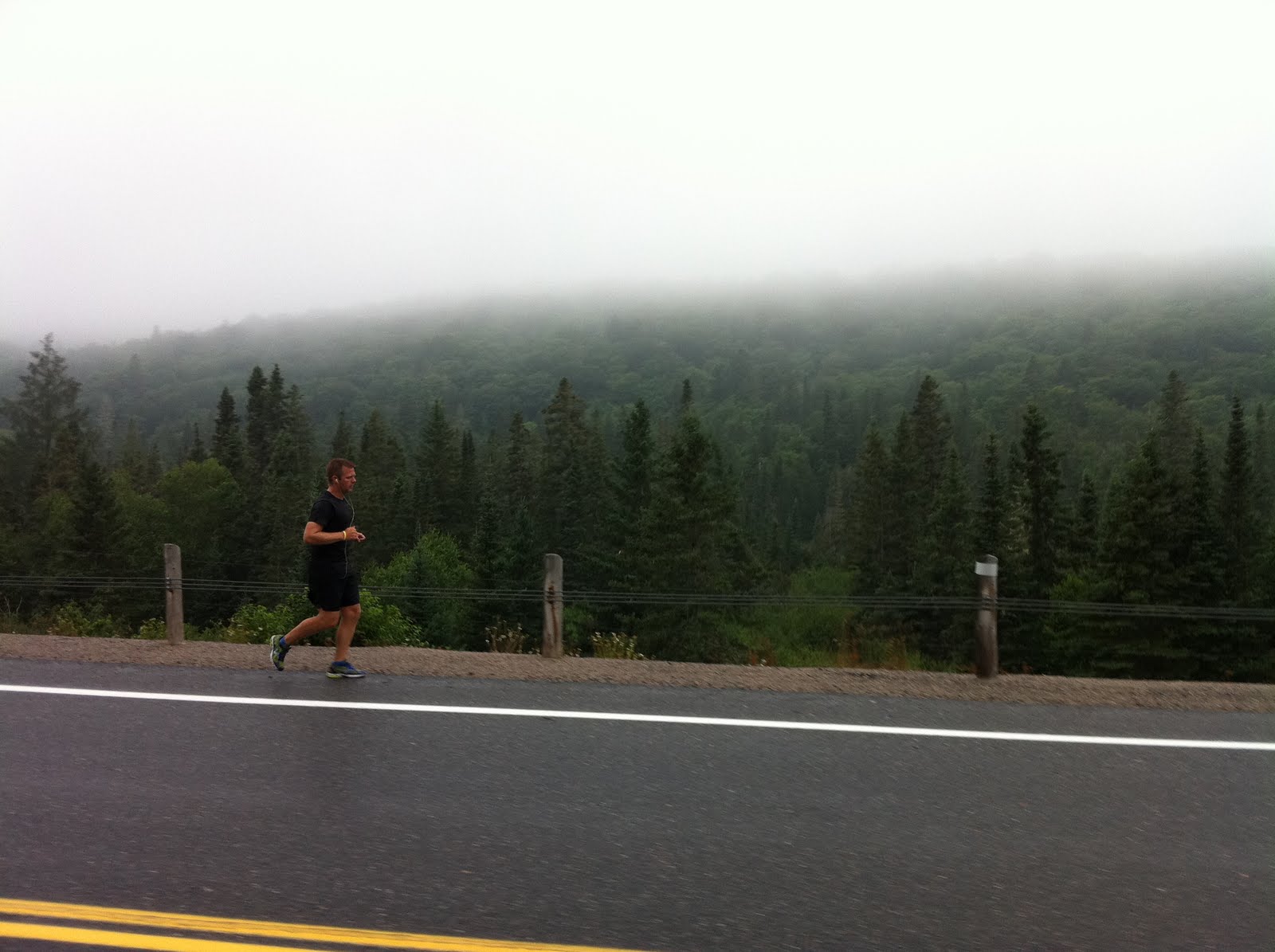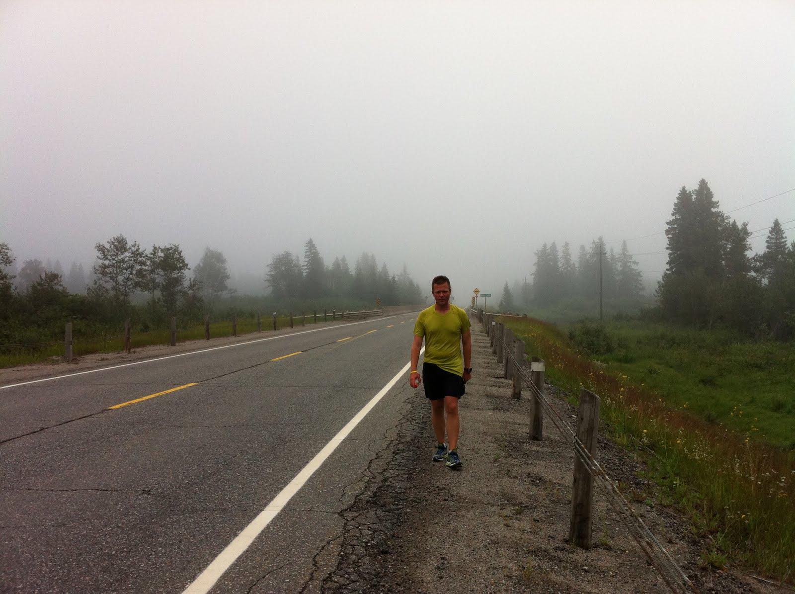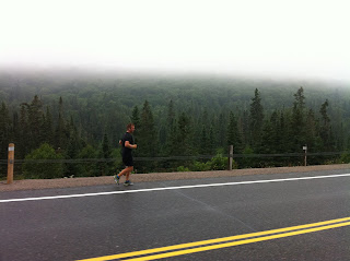 The day began in the middle of a cloud. The beautiful vista that we had gone to sleep with was replaced by total fog. I was essentially running through a cloud the whole day.