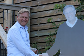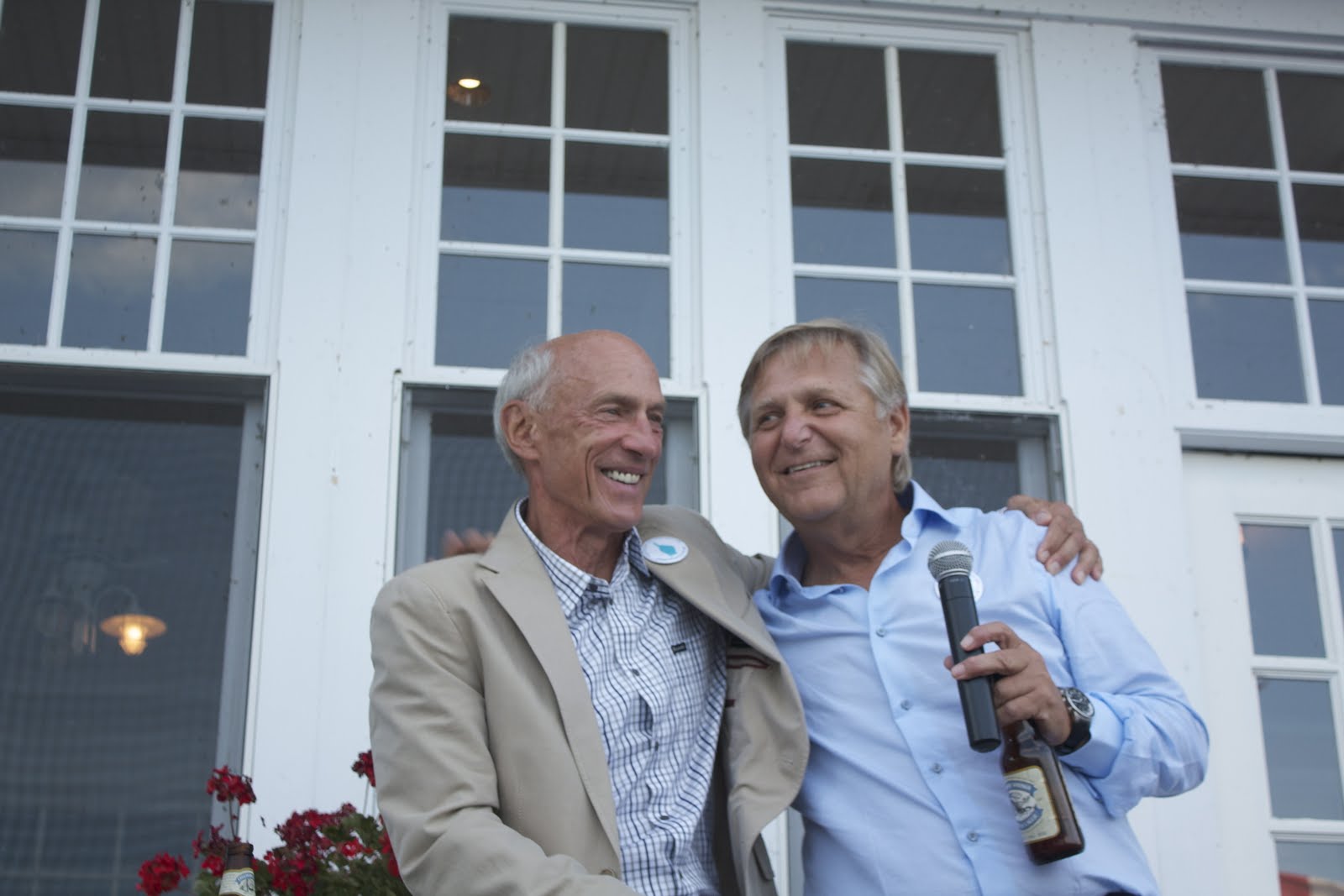 The celebration took place at the Royal Lake of the Woods Yacht Club. Two life size cardboard cutouts of Rod and John greeted guests. The sun continued to shine upon us as familiar faces from childhood, high school, university, work, and the lake swarmed the deck for cocktails. Our MC for the night, Don Konantz took to the steps to welcome everyone and introduce the famous birthday boys. With the cheers and singing of Happy Birthday before entering the doors of the Yacht Club it was evident immediately the impact these two individuals have had on the lives of their guests. A delicious carrot cake designed with the famous Step Into Action Finger and 65 candles was presented to the birthday boys.