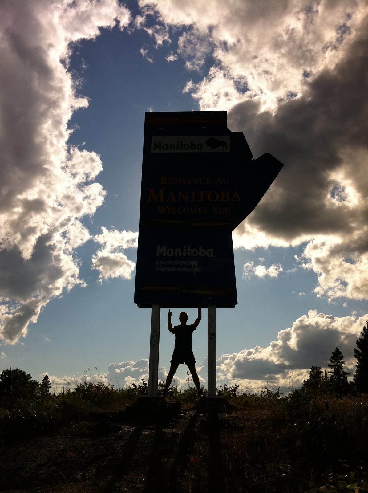 Shortly after lunch I crested the top of my last hill in Ontario and pulled even with the welcome to Ontario information centre. Not far off in the distance I could see the outline of the Welcome to Manitoba sign, in the shape of the province. I FINALLY MADE IT OUT OF ONTARIO!!!