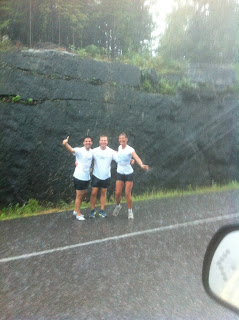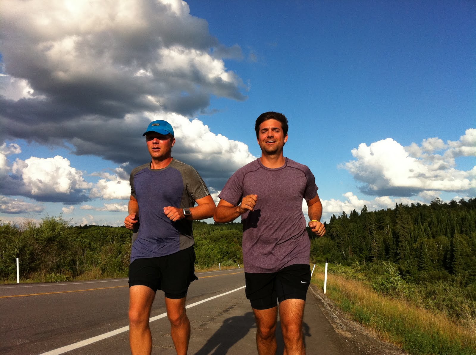 Catherine lasted 17km with us until Don drove by to collect her and take her home and with that we were out of Kenora. The rain lasted for a while longer but without the fury with which it had began. Derek and Mike alternated running with me throughout the day, which because of our late start had to be shortened to 60km as it was getting late.