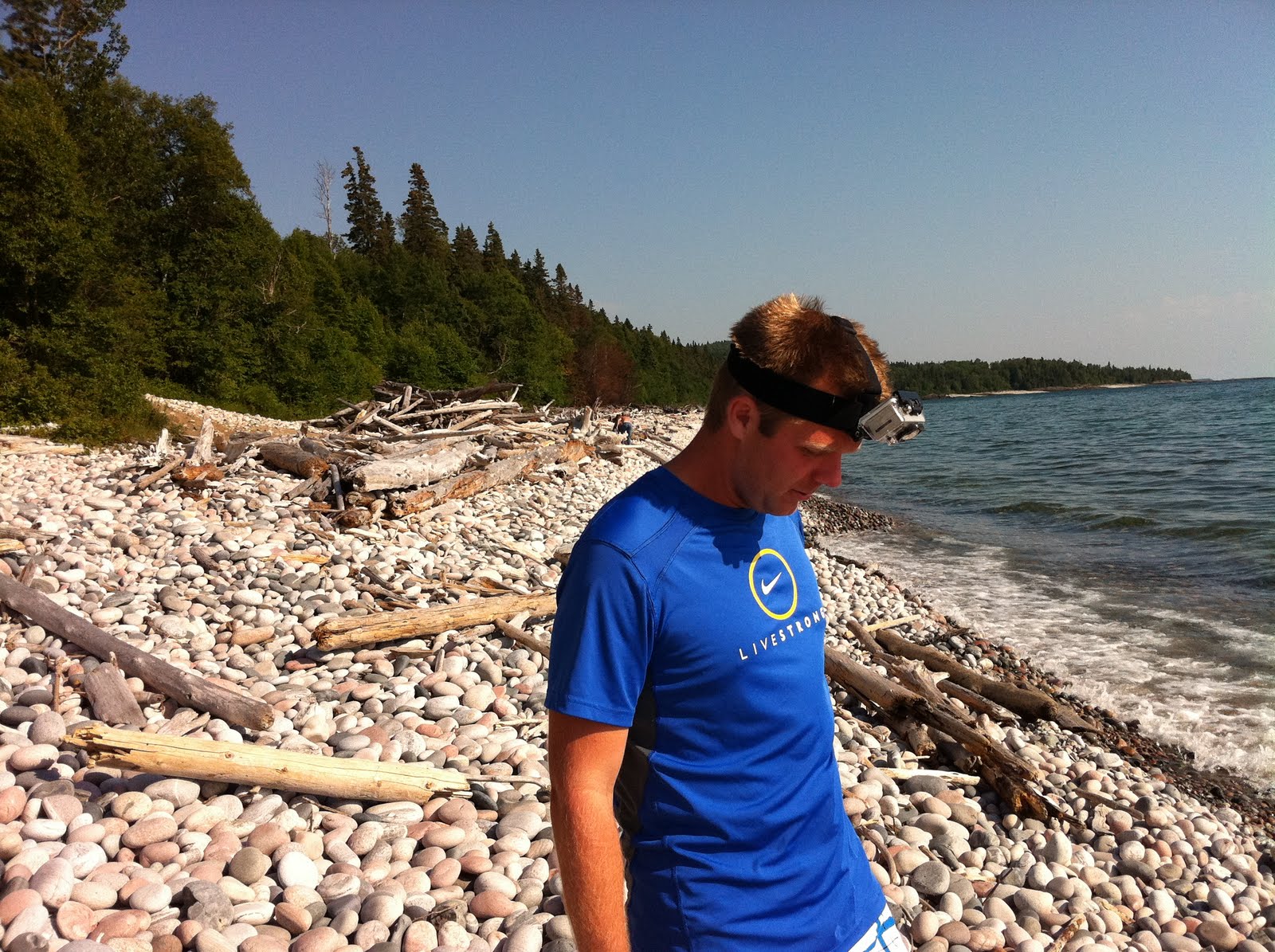 I spent the entire morning wearing the GoPro on my head, from before my alarm went off at 4:30am until I started running. Mike is planning on doing a short video from the point of view of my forehead. We’ll see how it turns out.