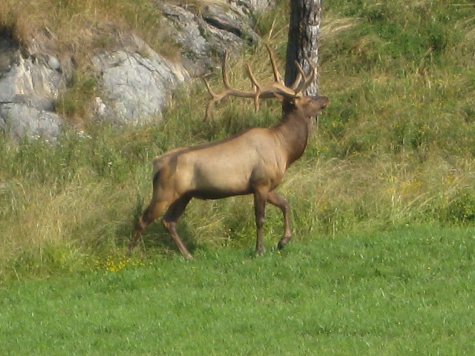 Riley stopped on the side of the road and pointed out a large Buck sitting next to some large rocks in a farm enclosure.  The enclosure had fences all the way around and were at least 7ft. high.  I had come to the conclusion that the Buck lived there, however, he quickly proved me wrong by wandering over towards the far fence then effortlessly leaping the tall fence.