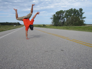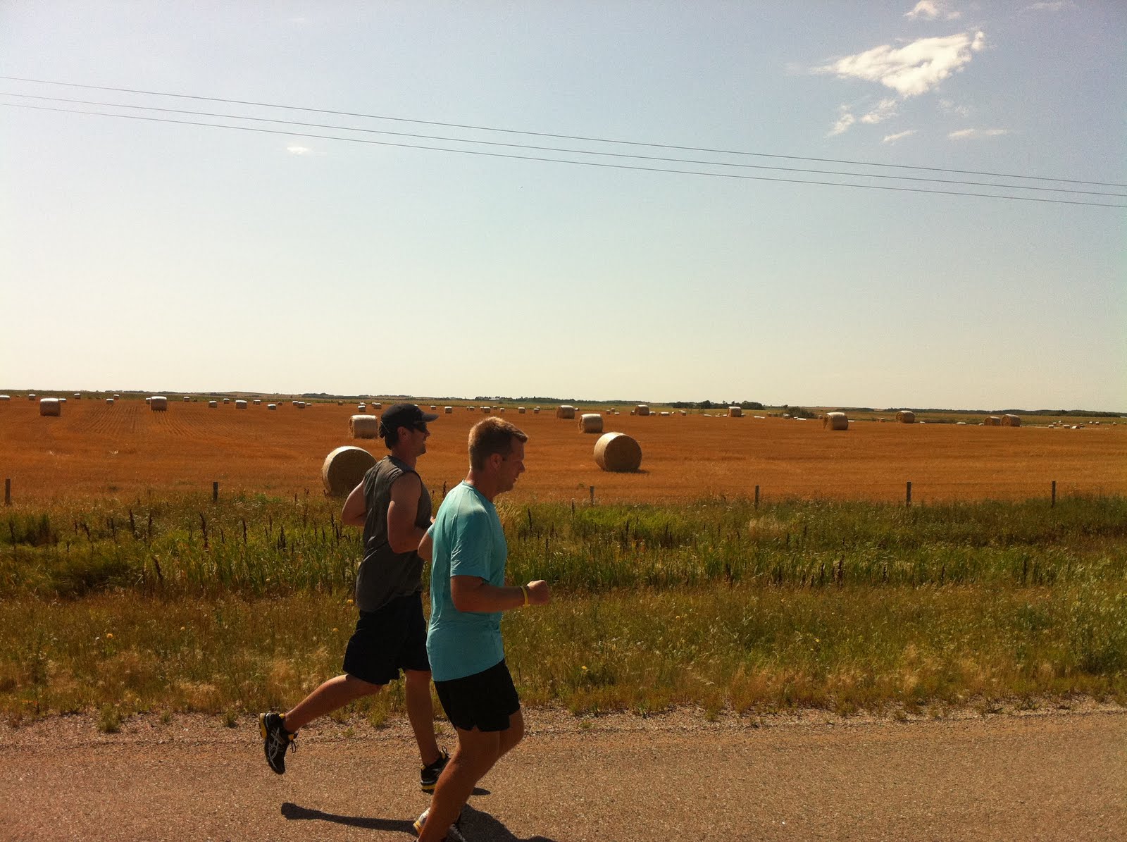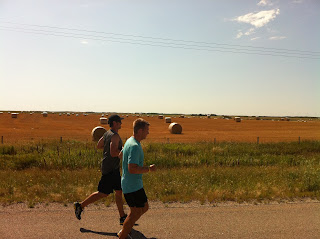 As we continued running, it seemed like any other regular day. Sunny, reaching a high of 29, with a slight head and side wind, but we should have known that there would be more excitement to be had. As I was staring off towards the Saskatchewan horizon, Riley yells "Watch out!" I look down and leap. I had almost stepped on a live and slithering snake on the shoulder of the road. Riley, knowing that I don't enjoy snakes, laughs and says "You're having a pretty exciting day after all, aren't you, Mike?"