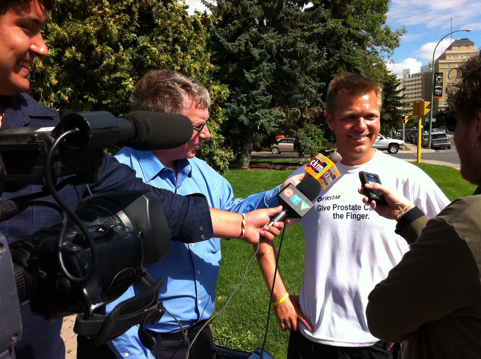 We arrived at City Hall around 1:30pm and were met by a number of media, the local prostate cancer Canada group, a number of police officers and Mayor Pat Fiacco. I did a number of interviews, we took some photos and then we were ready to go, but just before we left 5 figure skaters that were participating in a local conditioning camp came to join us. They included pairs, singles and dance skaters.