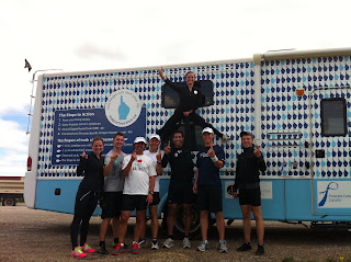 Mike and I ran the remaining 25km to the Regina city limits where we met Harold and Scott from the Regina Fire Department in the parking lot of the CTV building. They were going to escort us into town in their brand new fire engine.