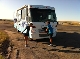 We drove a short distance to a nearby campground, and the owner had heard us on the radio this morning and offered to let us stay for free and gave us a donation. We met a group of guys in the campground who work on an oil field nearby who had also heard us on the radio and wanted to come by and chat. They too made a donation and yet another gentleman stopped by, again having heard us on the radio and who wanted to make a donation. These radio interviews are great, and I promise not to complain about having to get up early to do them anymore!