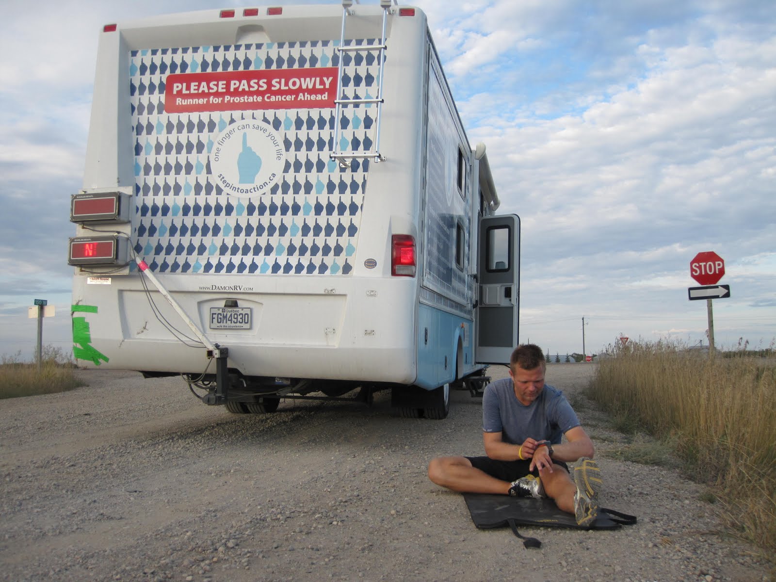 Once we finished stretching we set off for the long drive to Calgary. We stopped briefly in Medicine Hat for dinner, but other than that continued on for almost 4 hours. By the time we got to Calgary it was late and so we said goodbye to Ian and Jean and deposited them at a hotel and Mike and I continued on to park at one of Russ’s fire halls. Russ Jenkins is a friend of mine who will be joining us after the weekend.