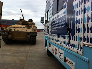 With about 10km left to run a friend of mine, Matt Green Armytage, showed up and ran with me. Matt is a captain in the British military and is over here for 6 weeks on a training exercise. After running he took us up to his military base and let us climb all over his Warriors, tanks and other cool military vehicles.