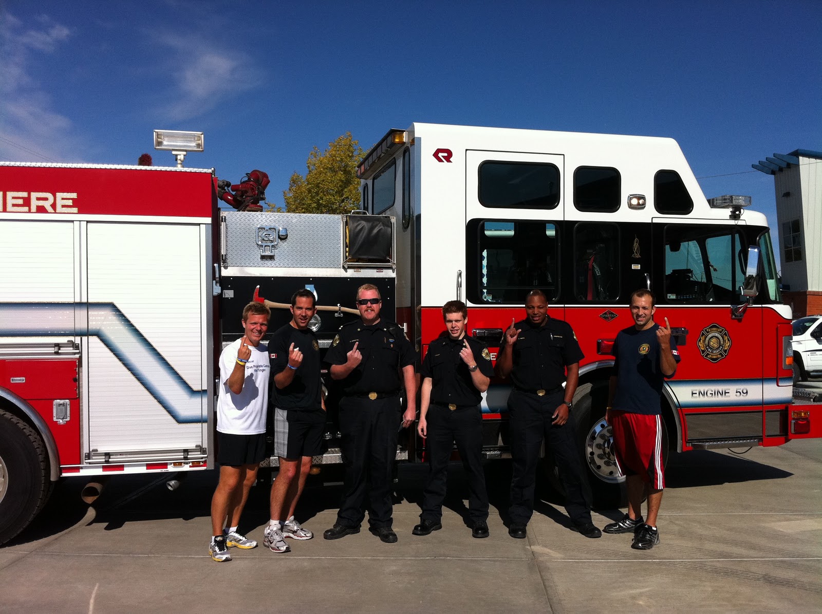 Our new fire escort was really excited to be escorting us and instead of following behind as every other fire truck has done, this one lead the way with us following behind. At each intersection he would drive right into the middle of the intersection, lights flashing, and block traffic for us to run through. I’ve never seen a fire escort block traffic before, and judging by some of the looks we got from motorists, I don’t think any of them had either.