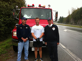 As I entered Hope Ian and Fred, two firefighters from Fire Hall No. 2, came out to escort us through. It was pouring rain for the majority of the day and I had to change a number of times to stay warm and shed the heavy rain soaked clothes. I managed to use only two pairs of shoes though, something I’m happy about as they take forever to dry.
