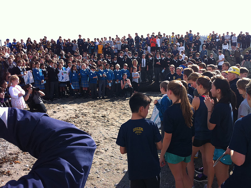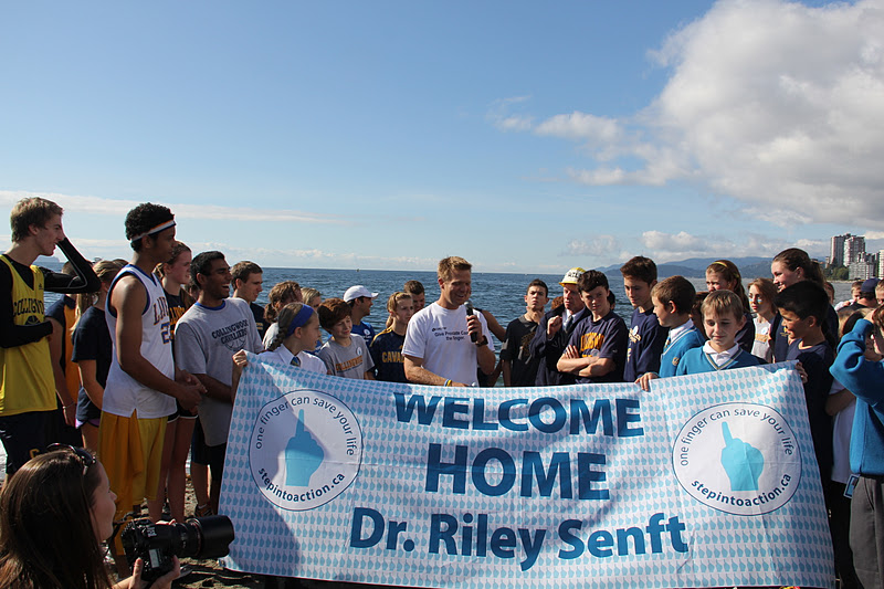 Again there was a banner at the end, and just like that I was at the edge of the Pacific Ocean. Rodger Wright, Collingwood’s Headmaster, and the mayor of West Vancouver said a few words and then I got a chance to address the crowd. I felt a little silly standing there surrounded by everyone cheering but I was having a great time!
