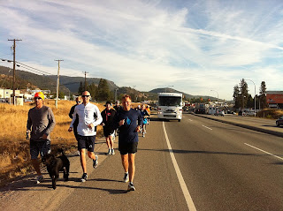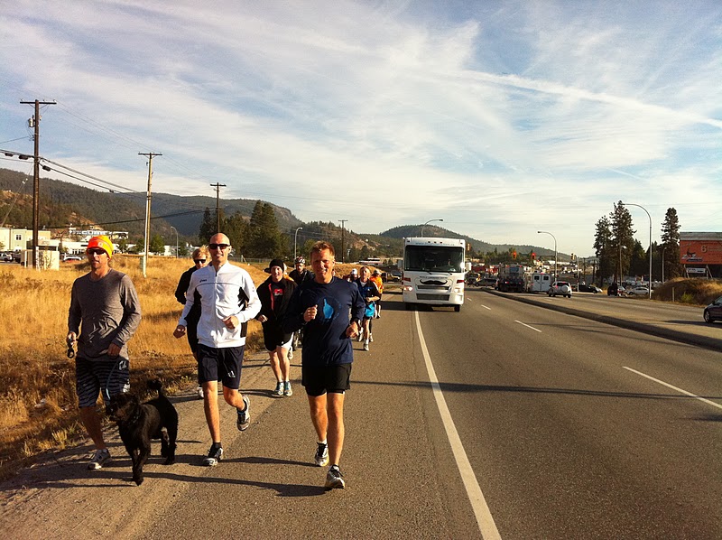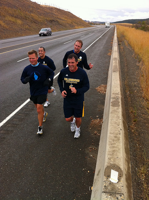 We said some quick hellos and then got back to running, this time with an additional five people. Snowden couldn’t run because he forgot his running shoes back at the hotel and Speirs was driving. They all ran varying distances throughout the day, some running multiple times, others just once. Elaine showed up at some point during the morning to collect Tyler and take him back home to Kelowna. It was awesome having him with us!