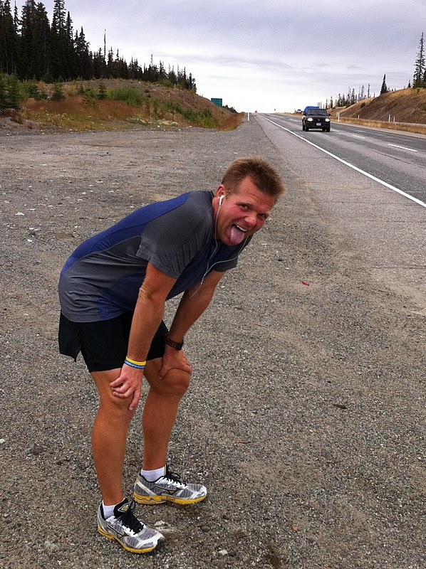 Snowden and I started running at the base of the hill out of Merritt. It ended up being an 8.5km ascent at a fairly steep grade, something that Snowy didn’t enjoy too much. He was red faced but determined not to stop. The boys started taking shorter shifts in the afternoon and I always had someone to run with.  By the end of the day Bryce had run 38km and then walked 2 to cool down. This coming from a guy who says he hasn’t run in 3-4 years.