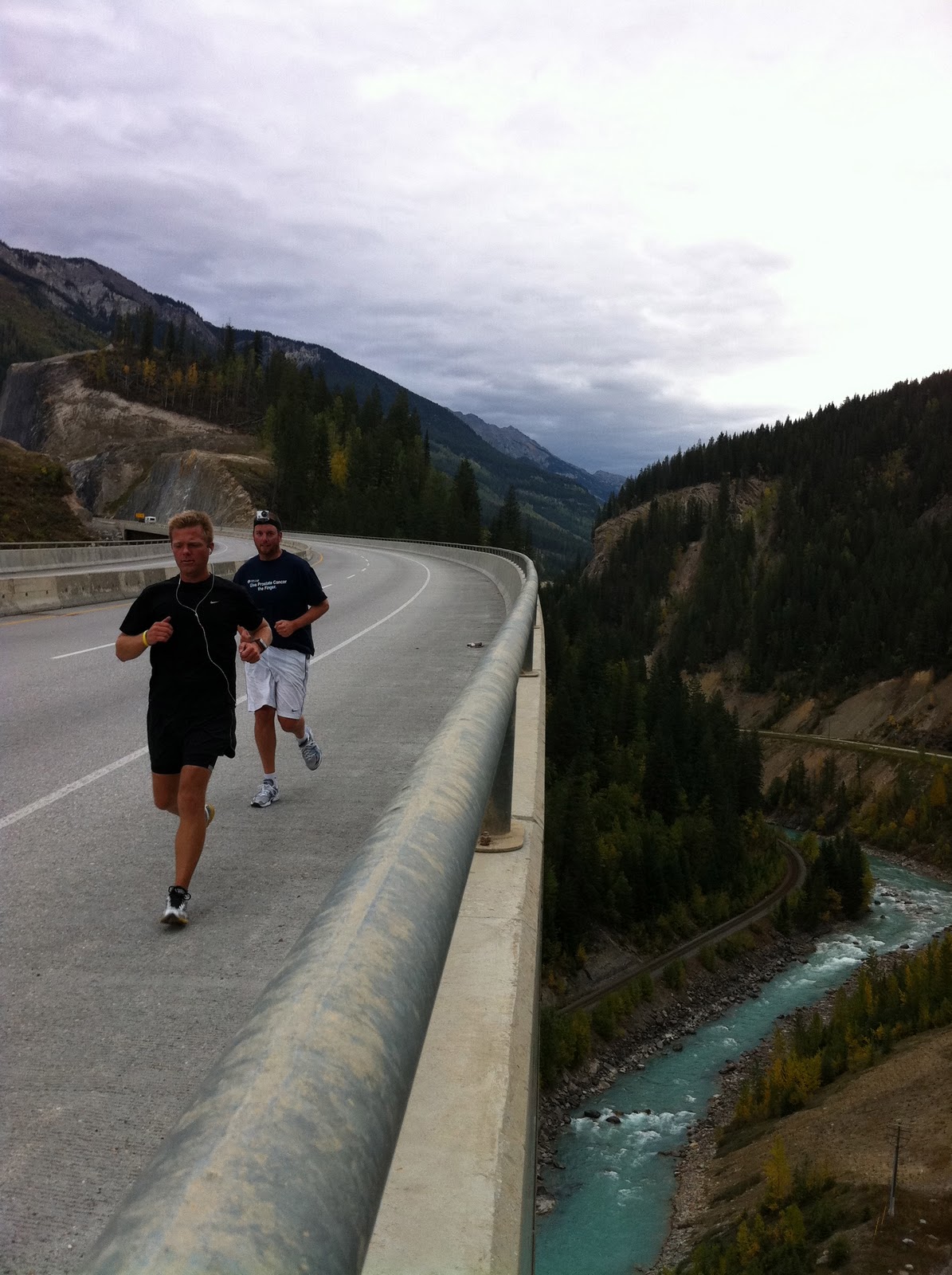 I started running just inside the BC border on a steep downhill. There were many signs during the morning warning truckers about the steep descent and it seemed to continue forever. I’d say a large portion of the first 30km was downhill. Unfortunately the pitch wasn’t such that I could take huge advantage of the descent and soon my quads started to ache. I haven’t really done any long descents yet on this trip so my legs really weren’t accustomed to it.